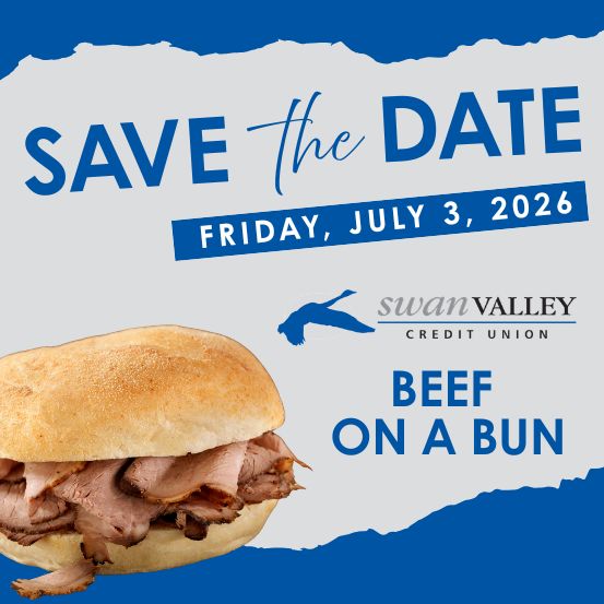 SVCU’s Annual Beef on a Bun returns on Friday, July 3! Join us for a delicious lunch while supporting the Benito Vesselli Dance Club and the Swan River Jackpots.